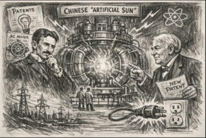Historia przełomowych technologii zwykle  zaczyna się od rywalizacji wizjonerów. Pod koniec XIX wieku taką rolę odegrali Nikola Tesla i Thomas Edison, których wynalazki ukształtowały fundamenty współczesnej energetyki. Edison, zwolennik prądu stałego, uzyskał swój pierwszy patent już w 1869 roku – US90,646 „Electric Vote Recorder”, który zapoczątkował jego imponujące portfolio innowacji. Tesla natomiast, przyszły propagator prądu przemiennego, swój pierwszy amerykański patent otrzymał w 1888 roku – US381,968 „Electro Magnetic Motor”, otwierając drogę do rewolucji w przesyle energii elektrycznej. Ich rywalizacja dotyczyła sposobu wykorzystania energii elektrycznej, a łączyła ich jedna idea: opanowanie sił natury i przekształcenie ich w użyteczną dla ludzkości Energię. Ponad sto pięćdziesiąt lat później podobna ambicja przyświeca chińskim naukowcom pracującym nad kontrolowaną fuzją jądrową.